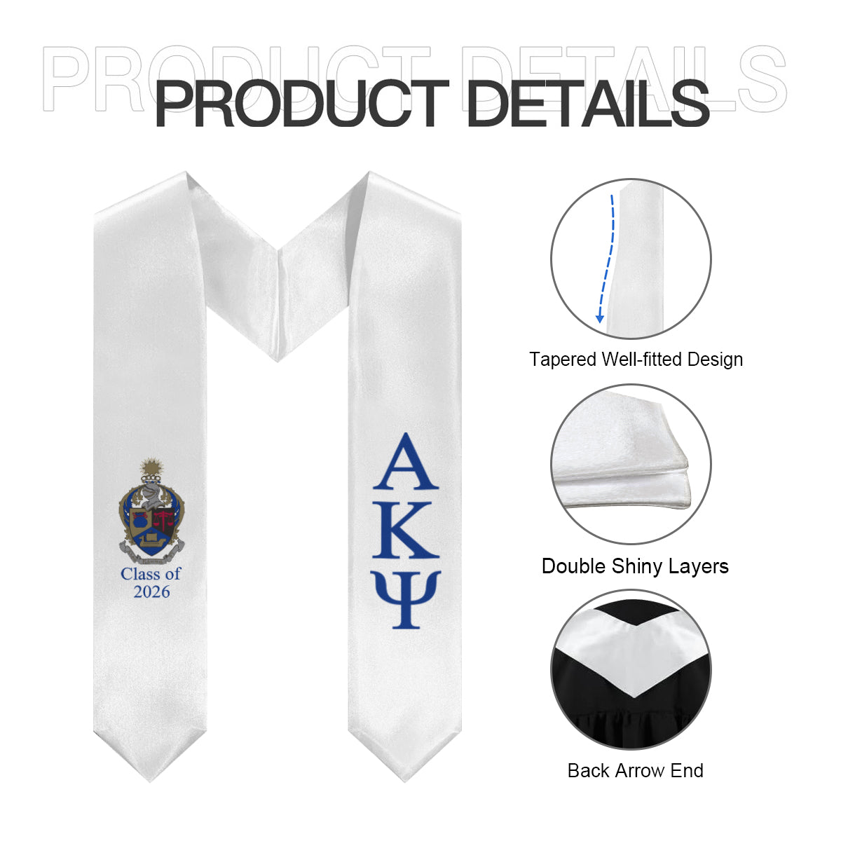 Celebrate your achievement in true Alpha Kappa Psi style with this Class of 2025 graduation stole. Featuring the AKΨ crest and colors in white, dark blue, and gold, this design honors your fraternity pride and professional brotherhood.
