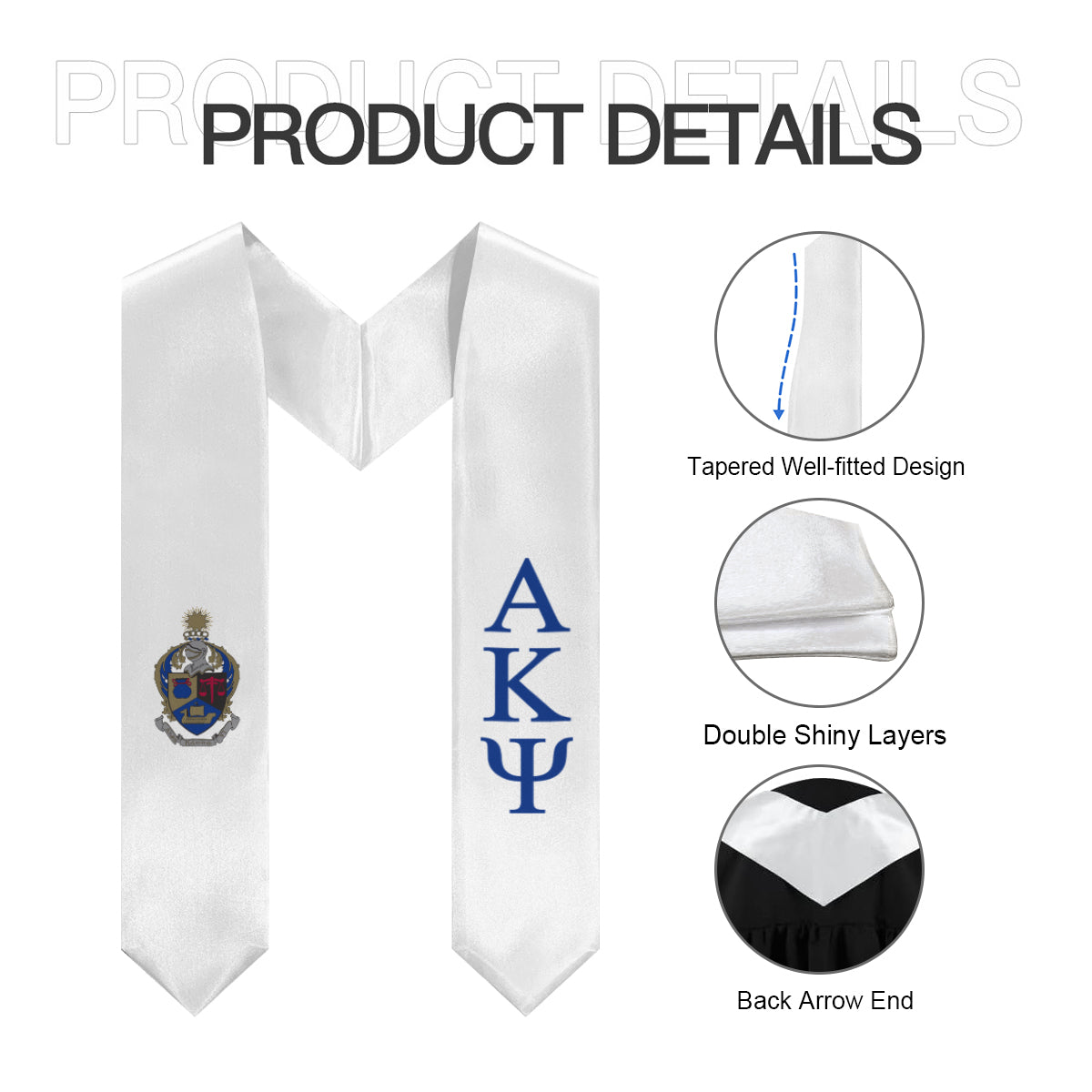Show your Alpha Kappa Psi pride in style with this sleek white and dark blue graduation stole. Featuring the fraternity crest for a touch of tradition, this design blends sophistication with meaning—perfect for grads ready to take the next step in leadership and success.