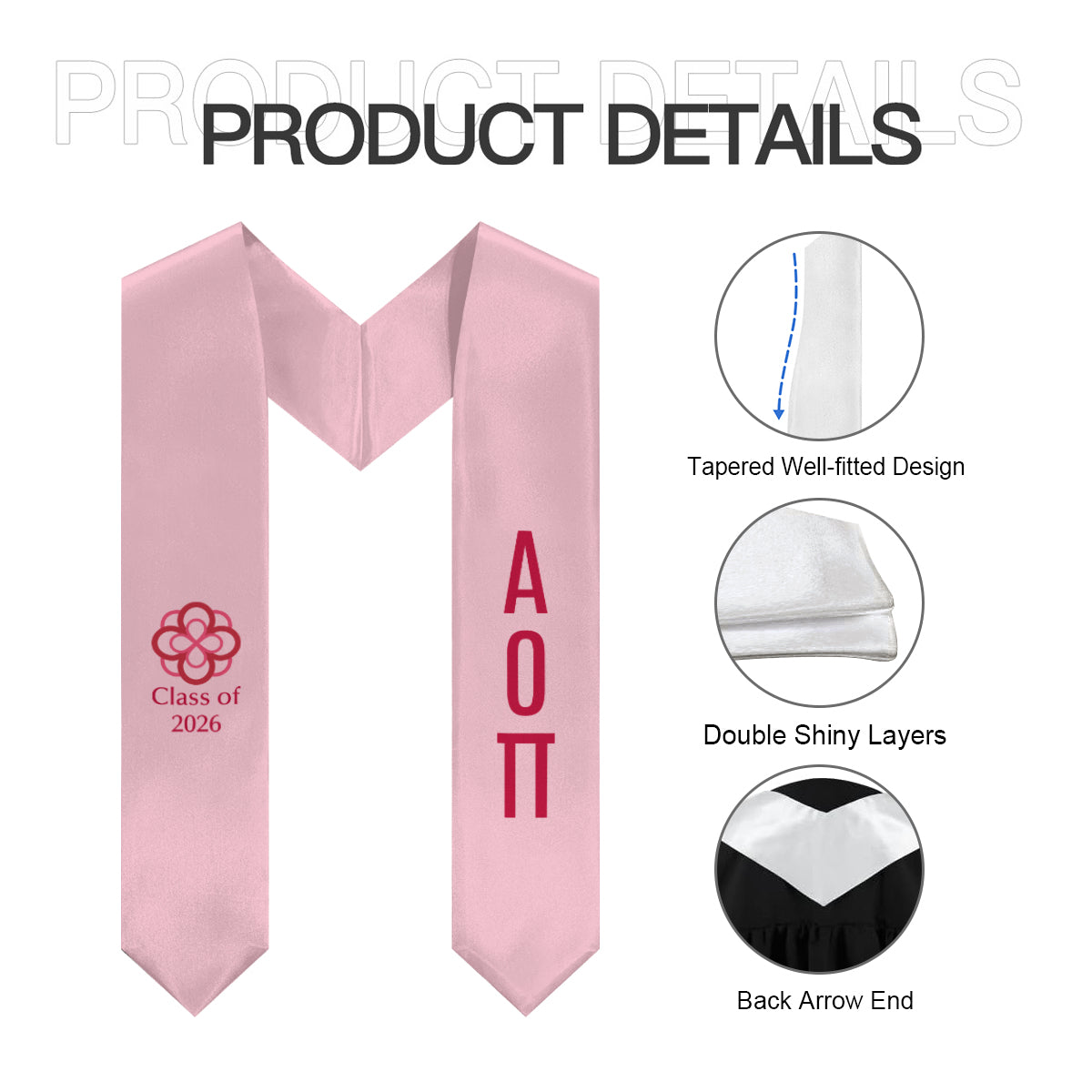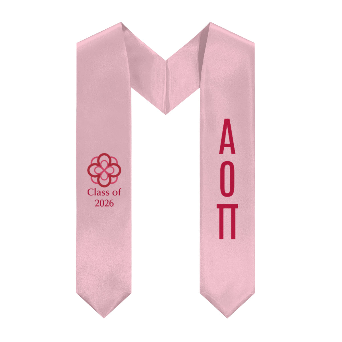 Celebrate your ΑΟΠ Class of 2026 with this pink and cardinal stole featuring the infinity rose and official letters. Designed to highlight your chapter pride in a timeless style, it’s perfect for graduation day, photos, and keepsake memories.