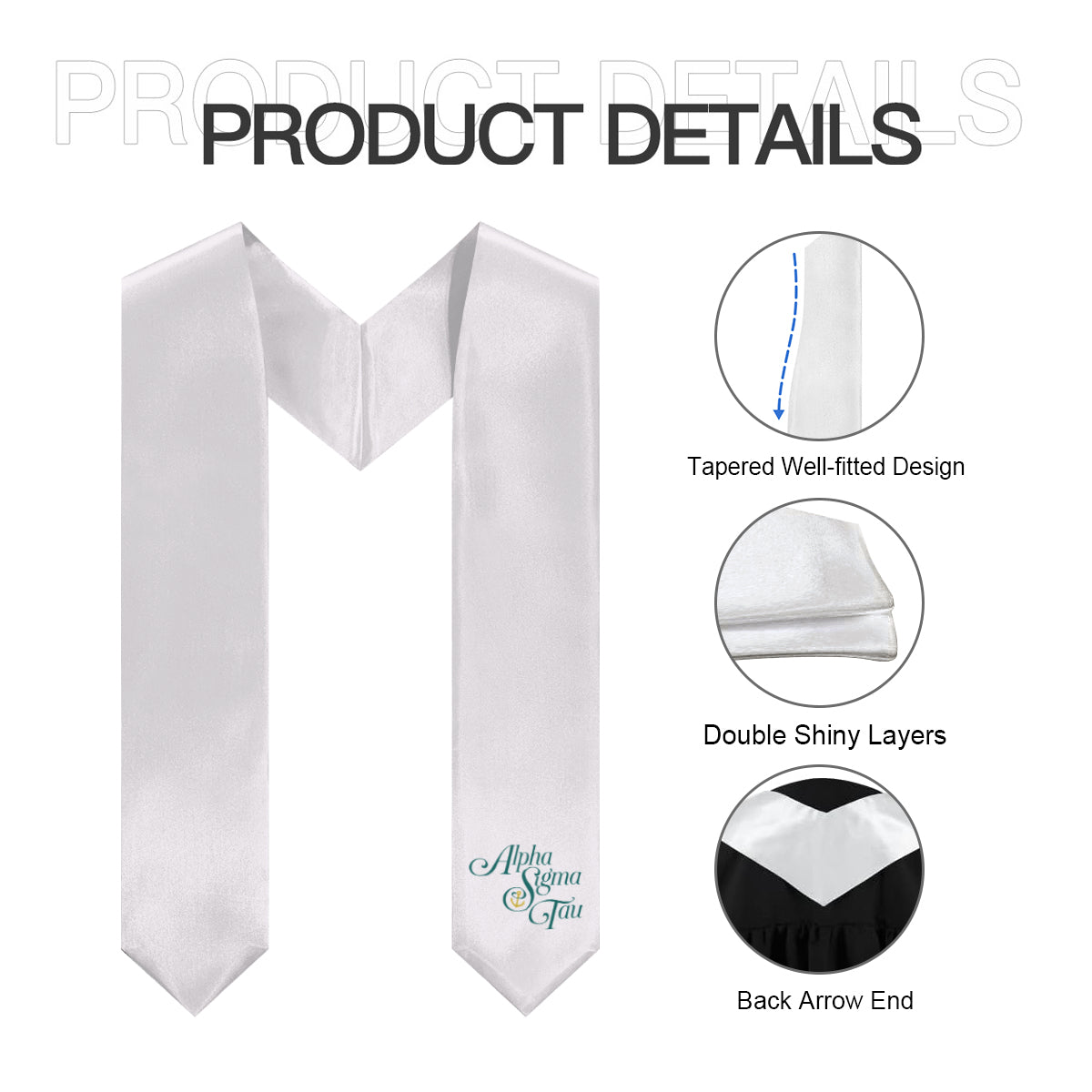 Keep it classic with this all-white Alpha Sigma Tau stole, featuring the sorority logo on the bottom left. Simple, elegant, and timeless, it’s perfect for graduation day, senior photos, or as a cherished keepsake of your sisterhood.