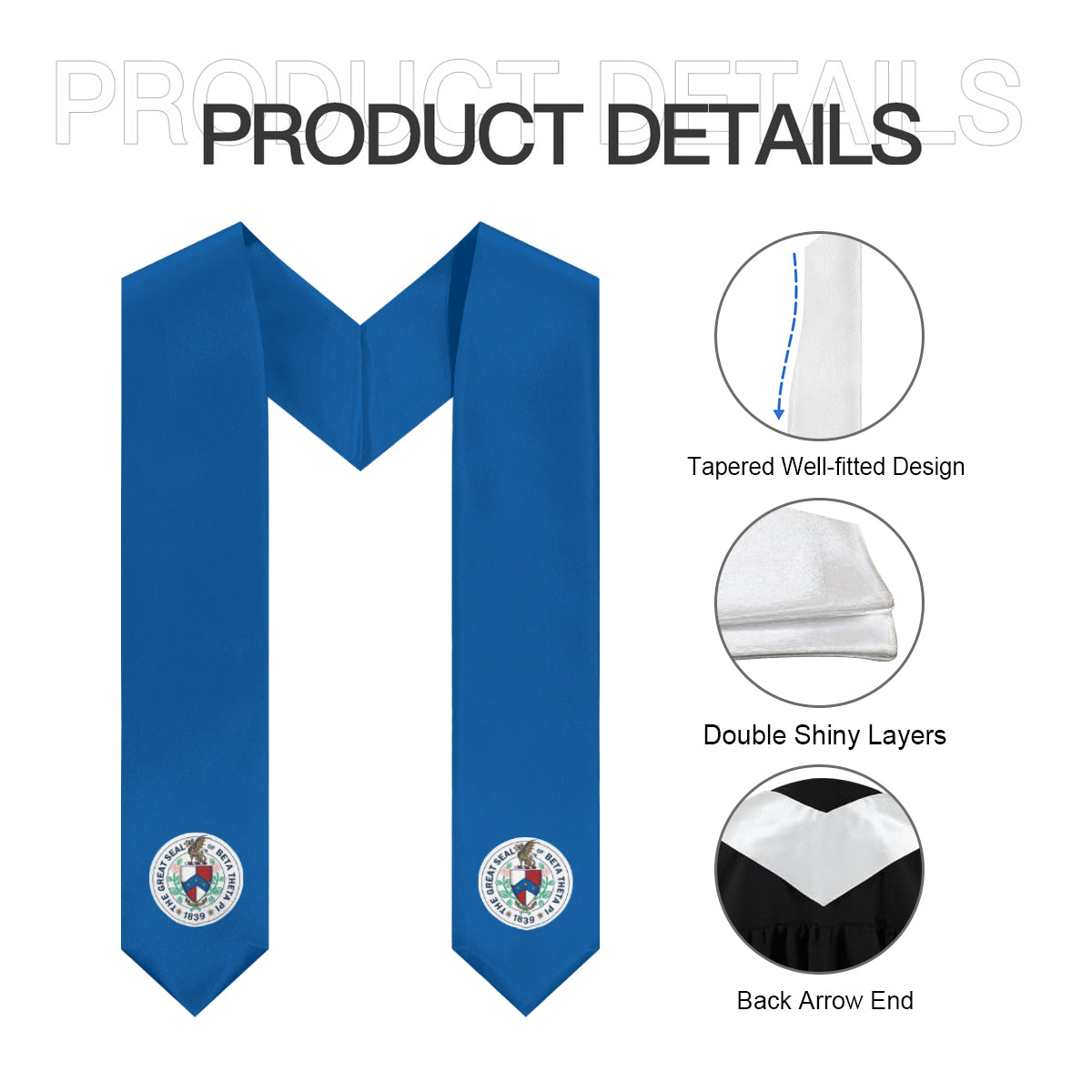 Honor tradition with this blue Beta Theta Pi graduation stole, featuring the fraternity’s Great Seal on both sides. A timeless, classic look that reflects the pride and heritage of brotherhood—perfect for seniors celebrating their milestone in style.