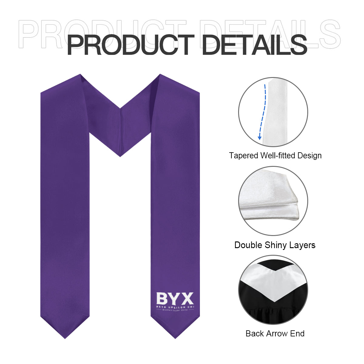 Celebrate graduation with this Beta Upsilon Chi stole featuring the descriptor logo in purple and white. A classic way to represent BYX and mark the moment as you cross the stage.