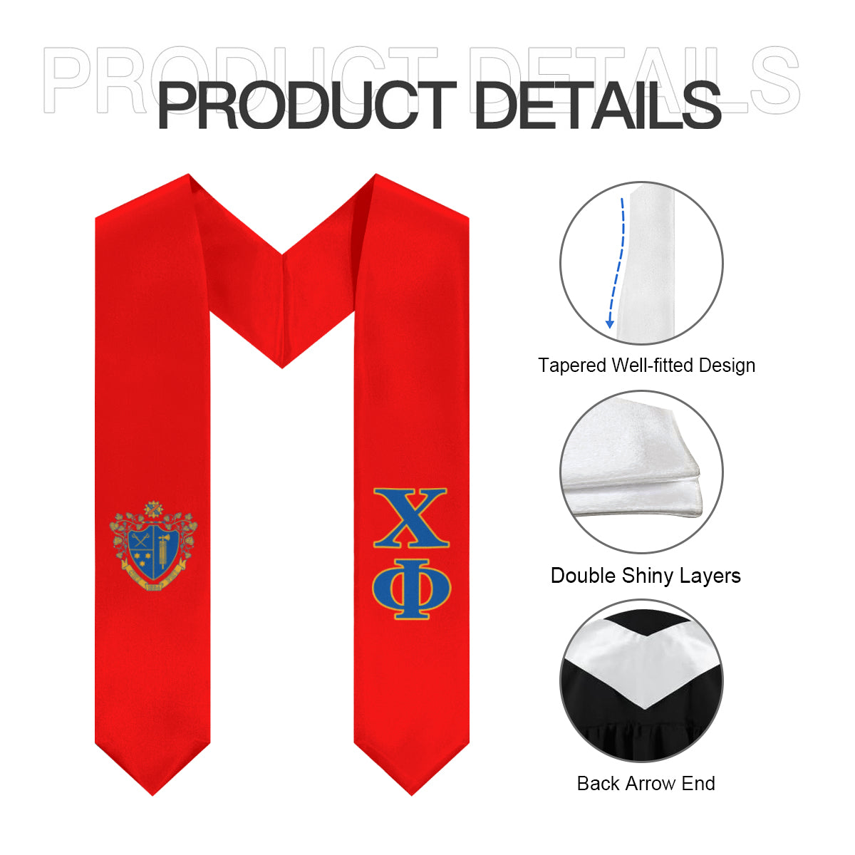 Celebrate your Chi Phi pride with this vibrant grad stole in scarlet, blue, and yellow. Featuring bold block letters and the fraternity crest, it’s perfect for showcasing your chapter spirit on graduation day. Ideal for photos, the stage, and keepsake memories, this stole is a must-have for every Chi Phi graduate.
