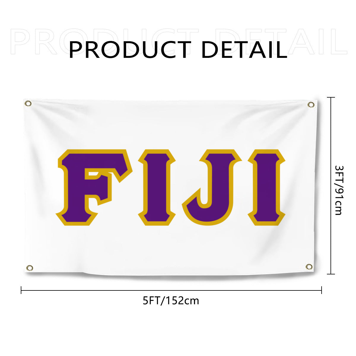 Brighten up your space with this FIJI Greek block four-grommet banner in white, purple, and yellow. Designed to stand out at chapter events, in houses, or on display year-round, this banner is a clean and eye-catching way to show fraternity pride wherever it’s hung.