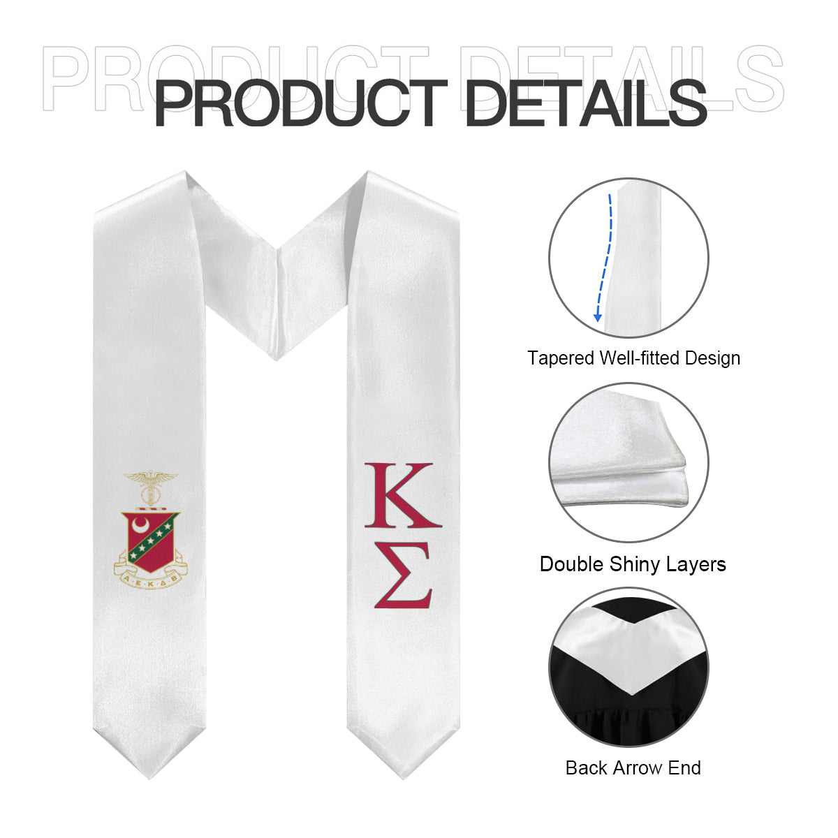 Stand out on graduation day with this ΚΣ stole in white, red, and green, complete with the fraternity crest. Designed to celebrate your achievements and chapter pride, it’s perfect for photos, the stage, or as a lasting keepsake of your fraternity journey.