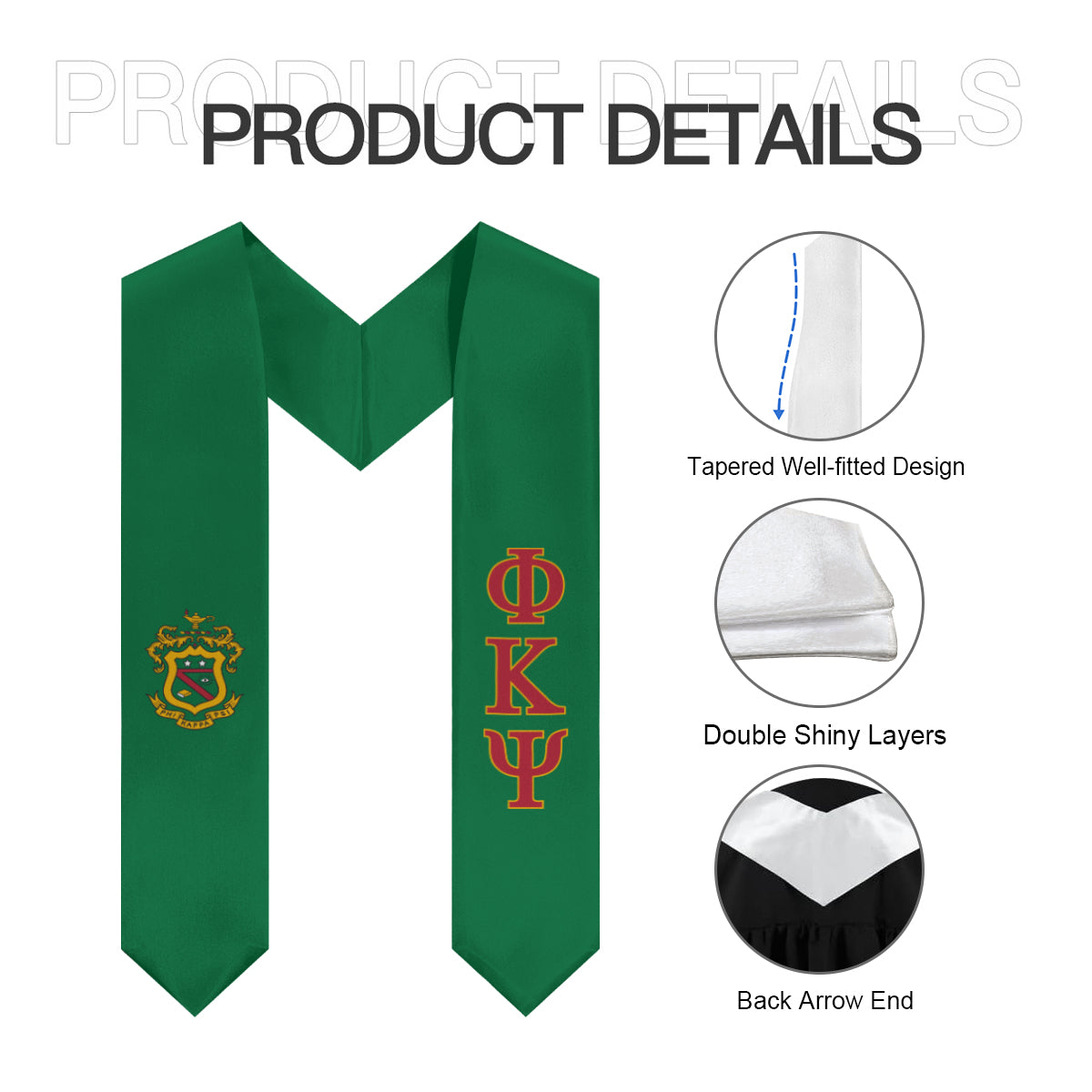 Celebrate your Phi Kappa Psi journey with this graduation stole featuring the fraternity’s official crest. Designed in green, red, and yellow, it’s a bold way to honor your achievements, brotherhood, and time in Phi Psi on graduation day and beyond.