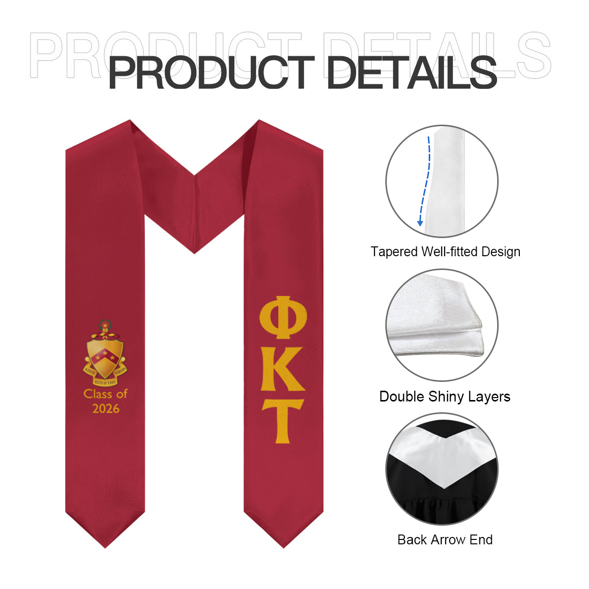 Phi Kappa Tau + Crest + Class of 2026 Graduation Stole - Harvard Red & Old Gold