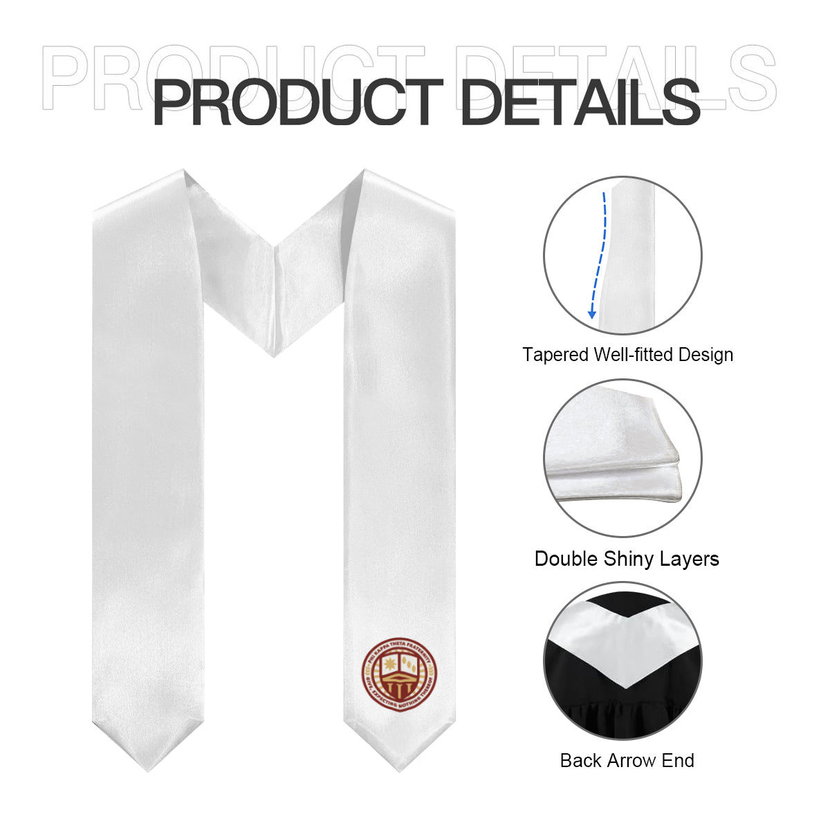 Celebrate your Phi Kappa Theta journey with this elegant white graduation stole featuring the fraternity’s emblem. Its classic design makes it a timeless addition to your graduation attire and a keepsake you’ll treasure long after the ceremony.