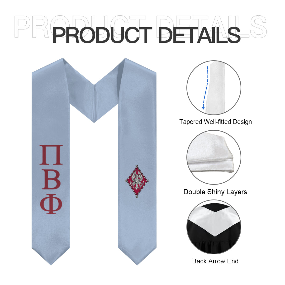 his Pi Beta Phi stole in heritage blue and wine brings a refined, modern look to your graduation day. The crisp crest detail adds a touch of tradition, while the rich color pairing makes your chapter pride stand out in every photo. A meaningful piece you’ll want to keep long after the ceremony.