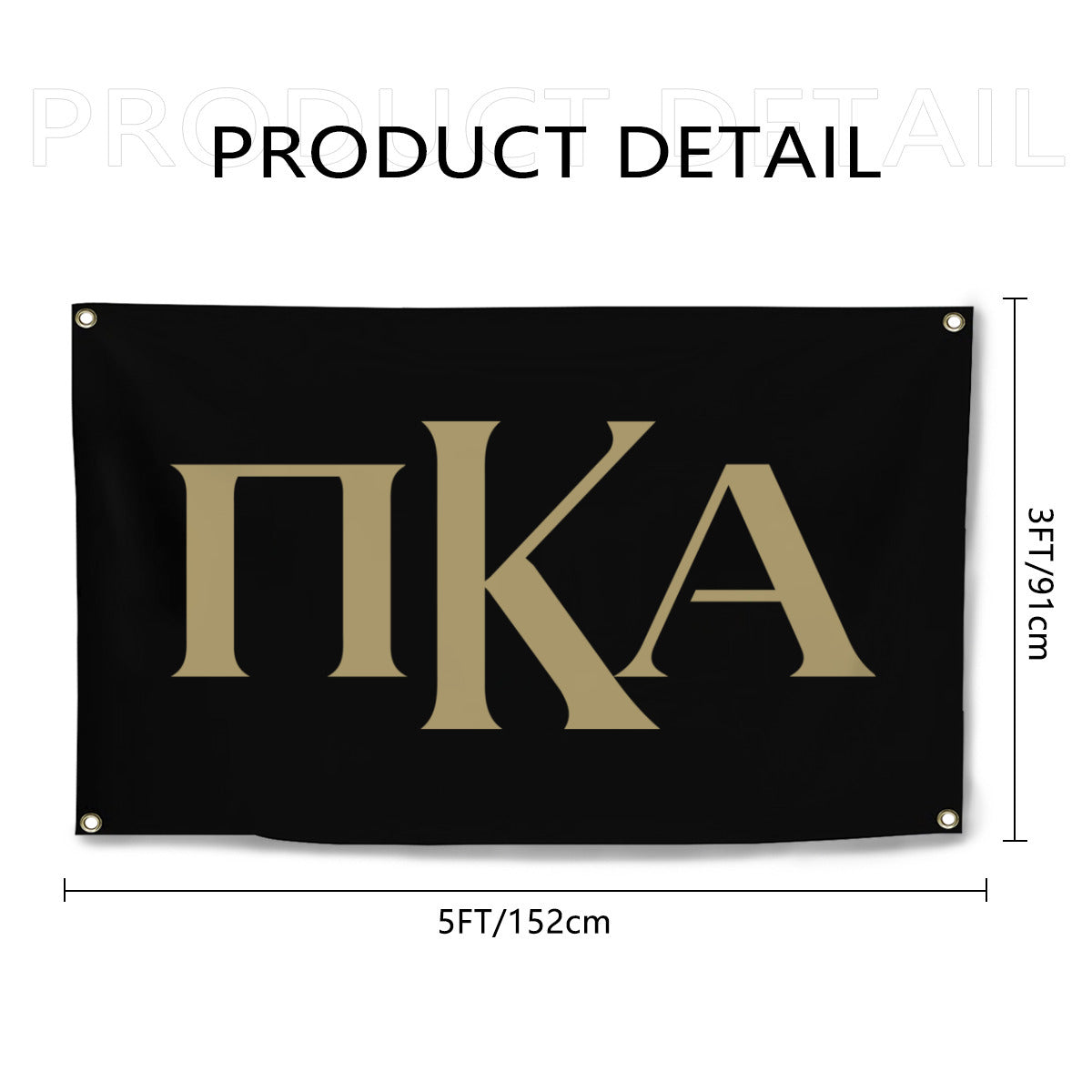 Rep PIKE with this black and gold banner featuring the Primary Greek Letters. Clean, bold, and chapter-ready, it’s perfect for fraternity events, dorm décor, and displaying your brotherhood wherever you hang it.