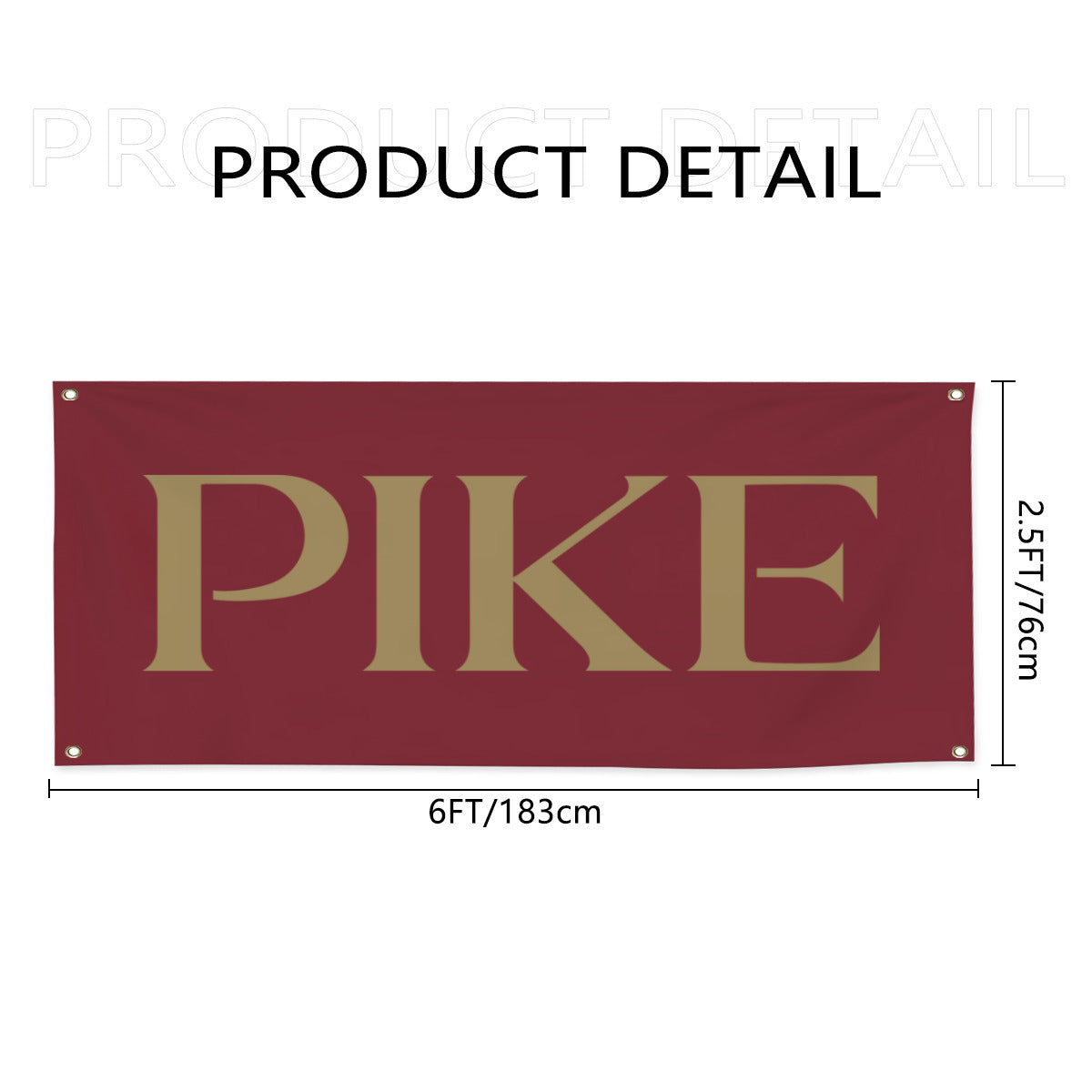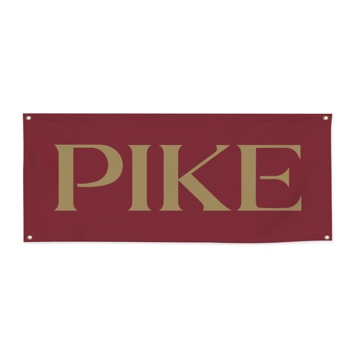 Show your PIKE pride loud and clear with this 2.5 x 6 ft banner in classic garnet and gold. Featuring four durable grommets for easy hanging, this banner is perfect for fraternity houses, events, or recruitment. A bold, high-quality way to rep ΠΚΑ wherever you go.