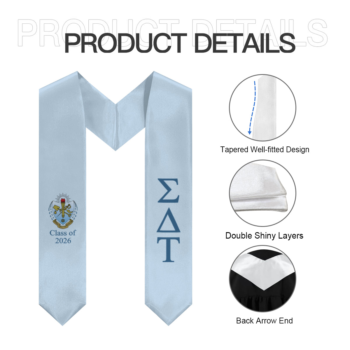 Sigma Delta Tau + Crest + Class of 2026 Graduation Stole - Light Blue & Old Blue