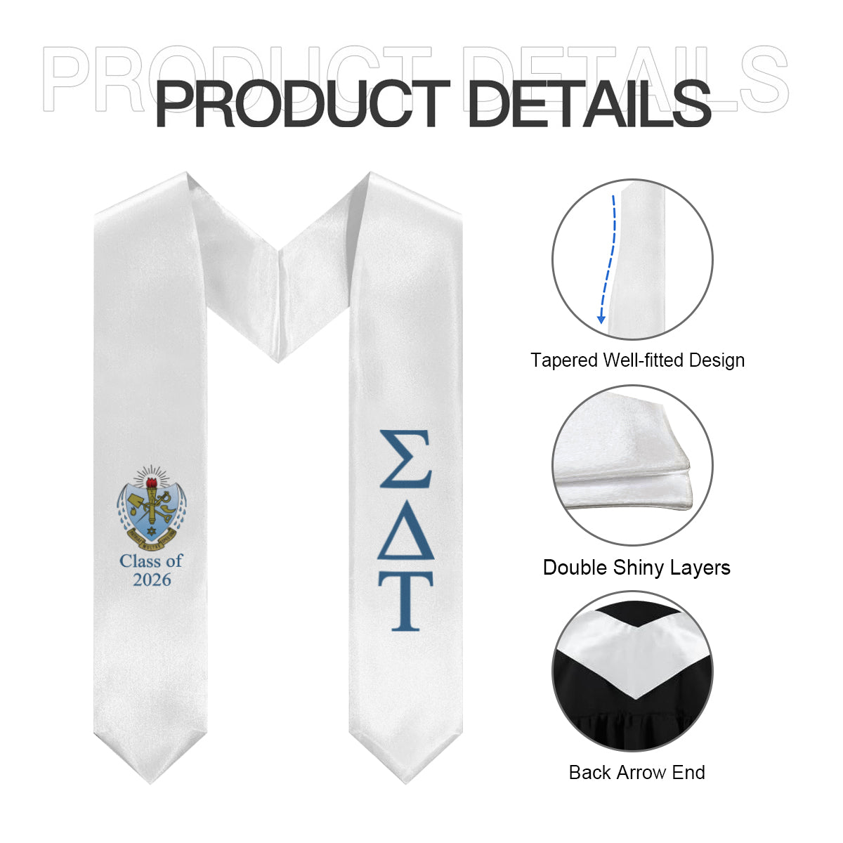 Sigma Delta Tau + Crest + Class of 2026 Graduation Stole - White & Old Blue
