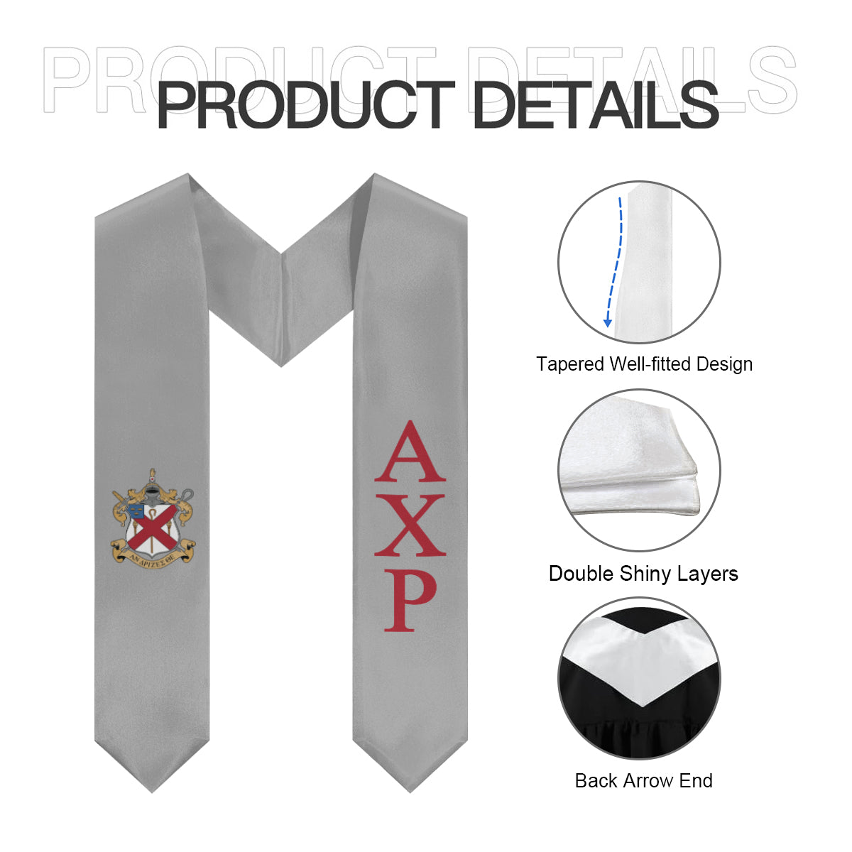 Stand out on graduation day with this sleek silver Alpha Chi Rho stole. Bold cardinal letters pop against the silver backdrop, while the full-color crest adds a vibrant, eye-catching detail. Modern, clean, and designed to showcase your Α Χ Ρ pride with style and sophistication.