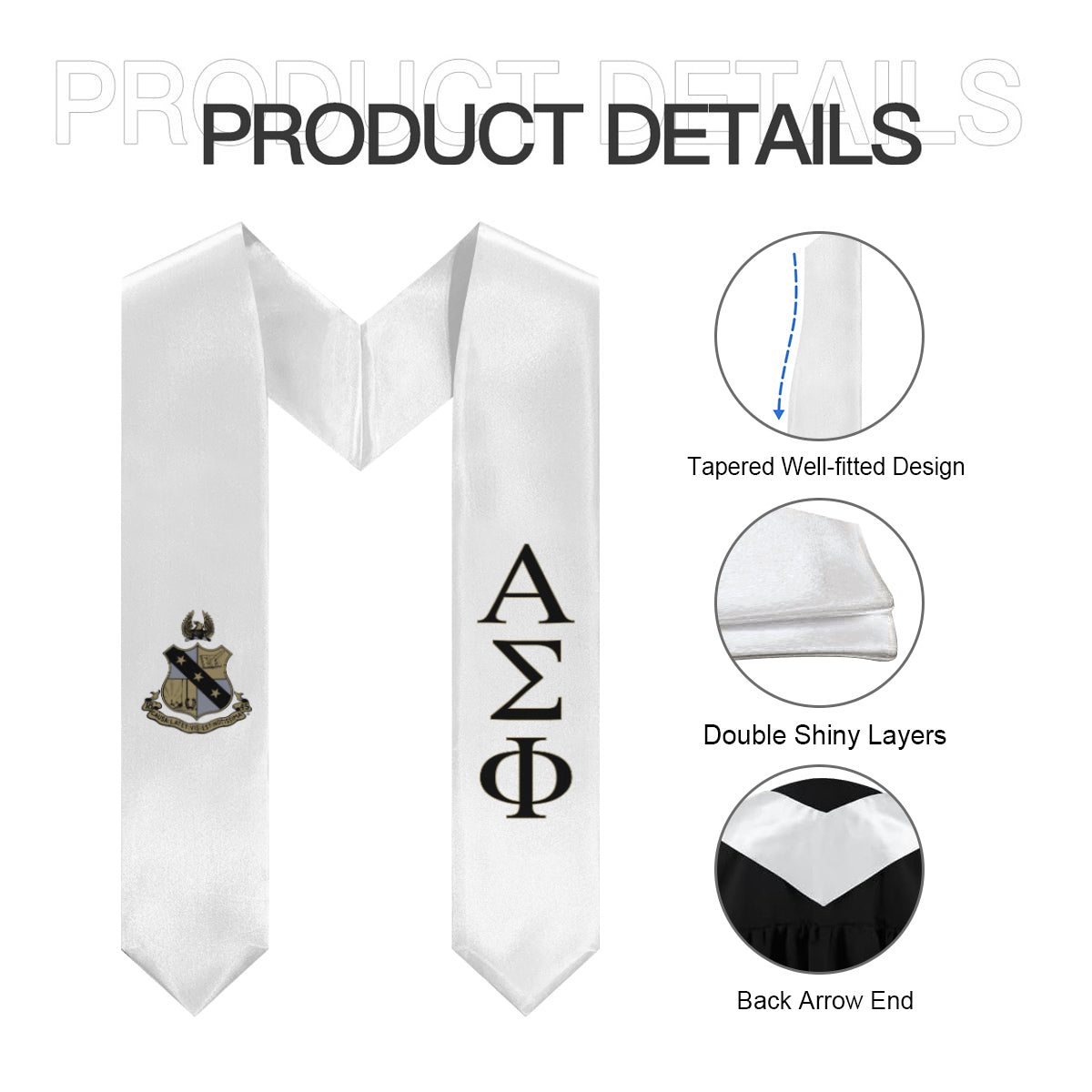 Alpha Sigma Phi Graduation Stole With Crest - White, Black & Gold