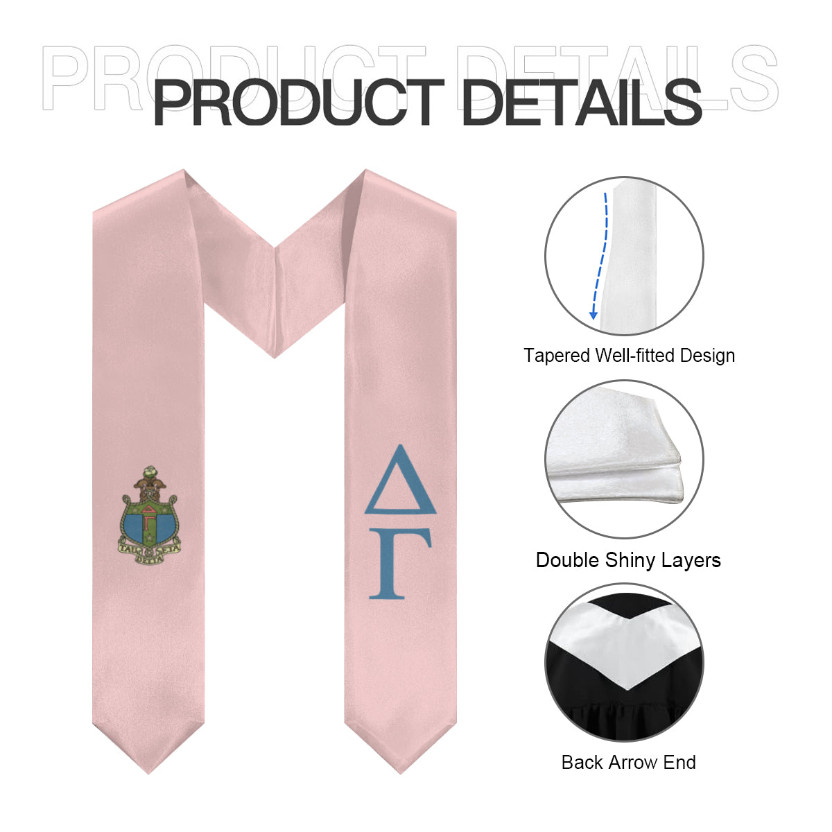 Delta Gamma Graduation Stole With Crest - Pastel Pink & Dusty Blue