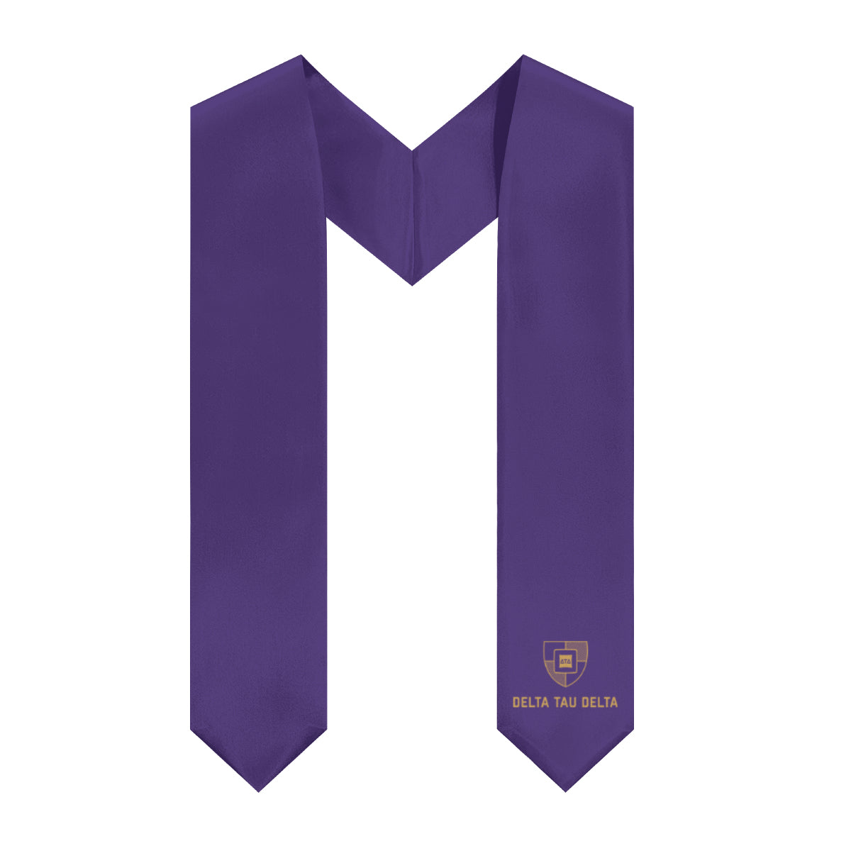 Keep your graduation look clean and classic with this Delta Tau Delta logo stole in Explorer Purple. Featuring the ΔΤΔ logo at the bottom, this stole offers a simple, meaningful way to honor your fraternity as you walk the stage.