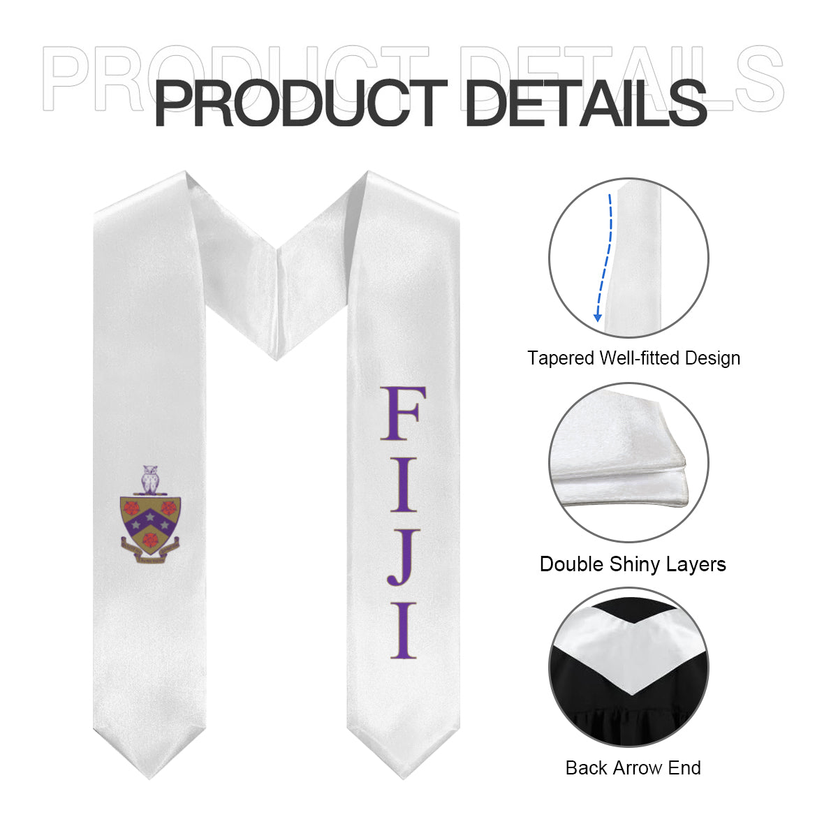 Show your FIJI pride with this graduation stole featuring the official crest and vibrant purple and gold accents. A stylish, memorable way to celebrate your achievements and stand out on graduation day.