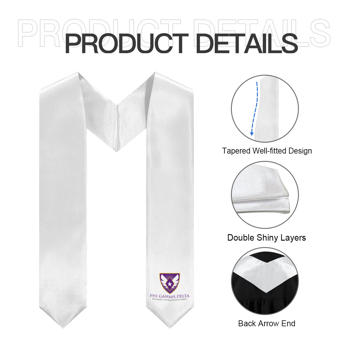 Show your Phi Gamma Delta pride on graduation day! This crisp white stole features the official Phi Gamma Delta logo, making it a sleek and meaningful accessory for your milestone moment.