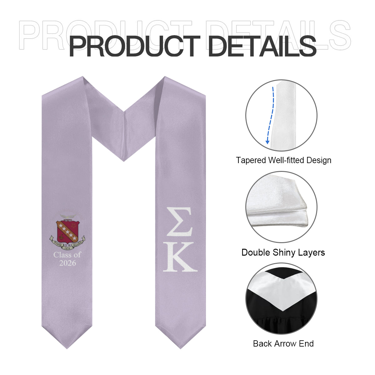 Make your graduation unforgettable with this custom Sigma Kappa Class of 2026 stole. Featuring the official ΣΚ crest and a soft lavender-and-white colorway, this stole blends elegance with sisterhood pride.