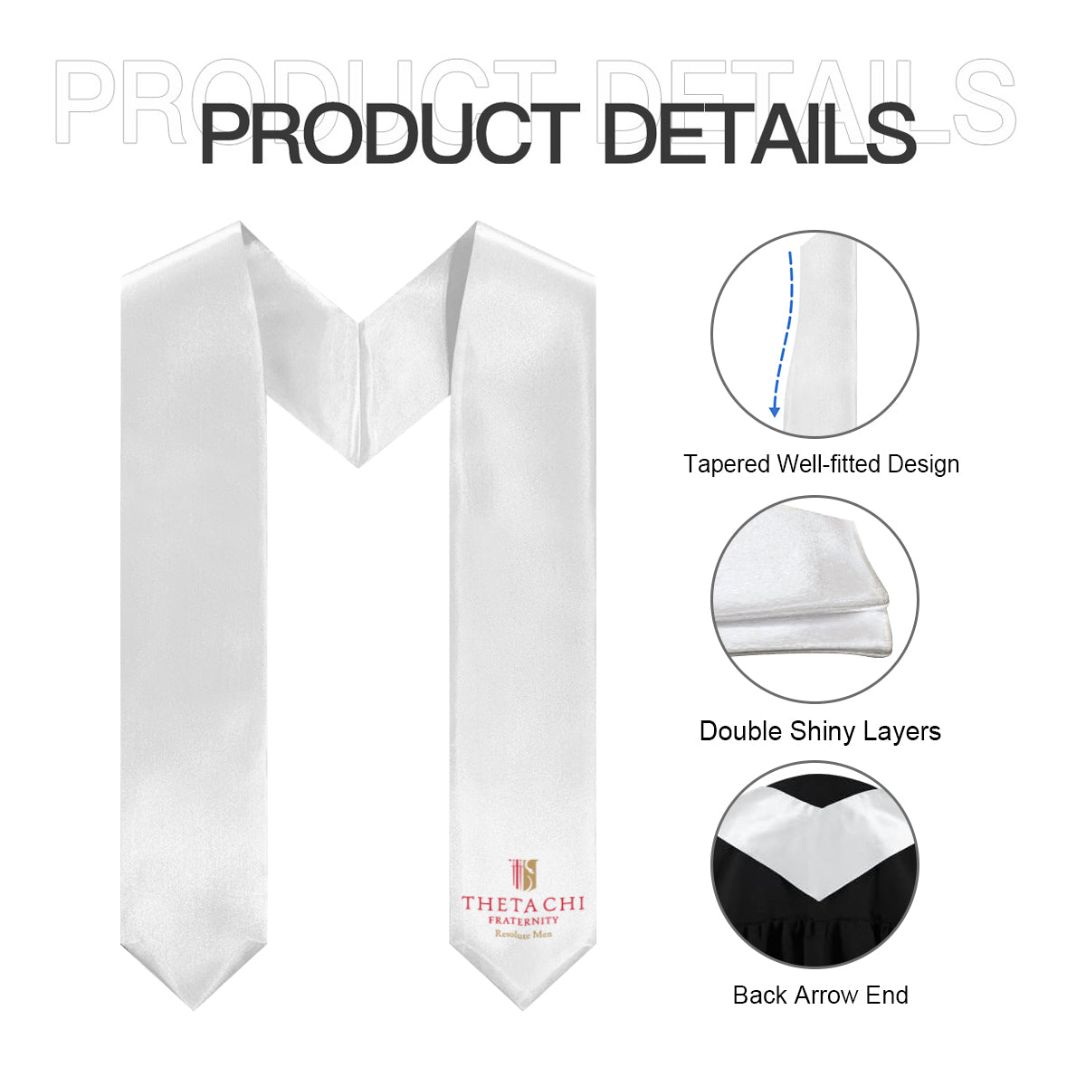 Show your Theta Chi pride with this clean, white stole featuring the fraternity logo. Its minimalistic design offers a timeless, understated way to showcase chapter spirit, making it perfect for graduation day, photos, and keepsake memories.
