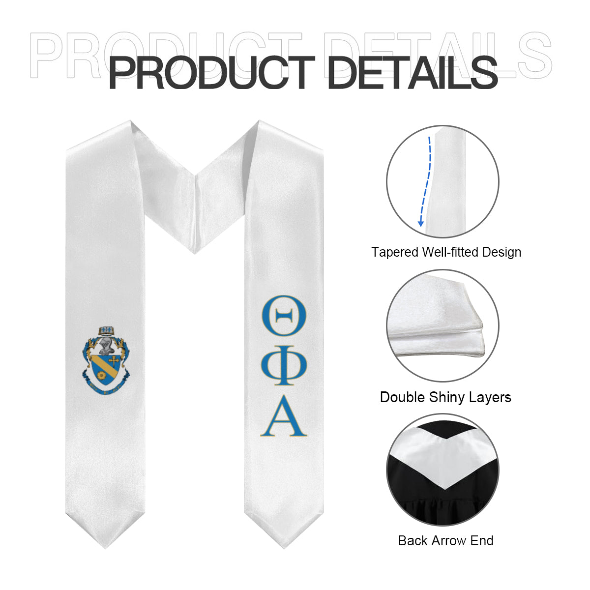 Make your graduation day unforgettable with this classic Theta Phi Alpha graduation stole. Designed in white, blue, and gold and featuring the official Theta Phi Alpha crest, this stole is a timeless way to celebrate your sorority journey.