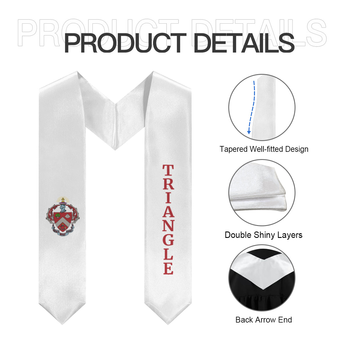 Honor your time in Triangle with this white and red stole, finished with the fraternity coat of arms. It’s a classic option for seniors who want to showcase their affiliation during commencement.