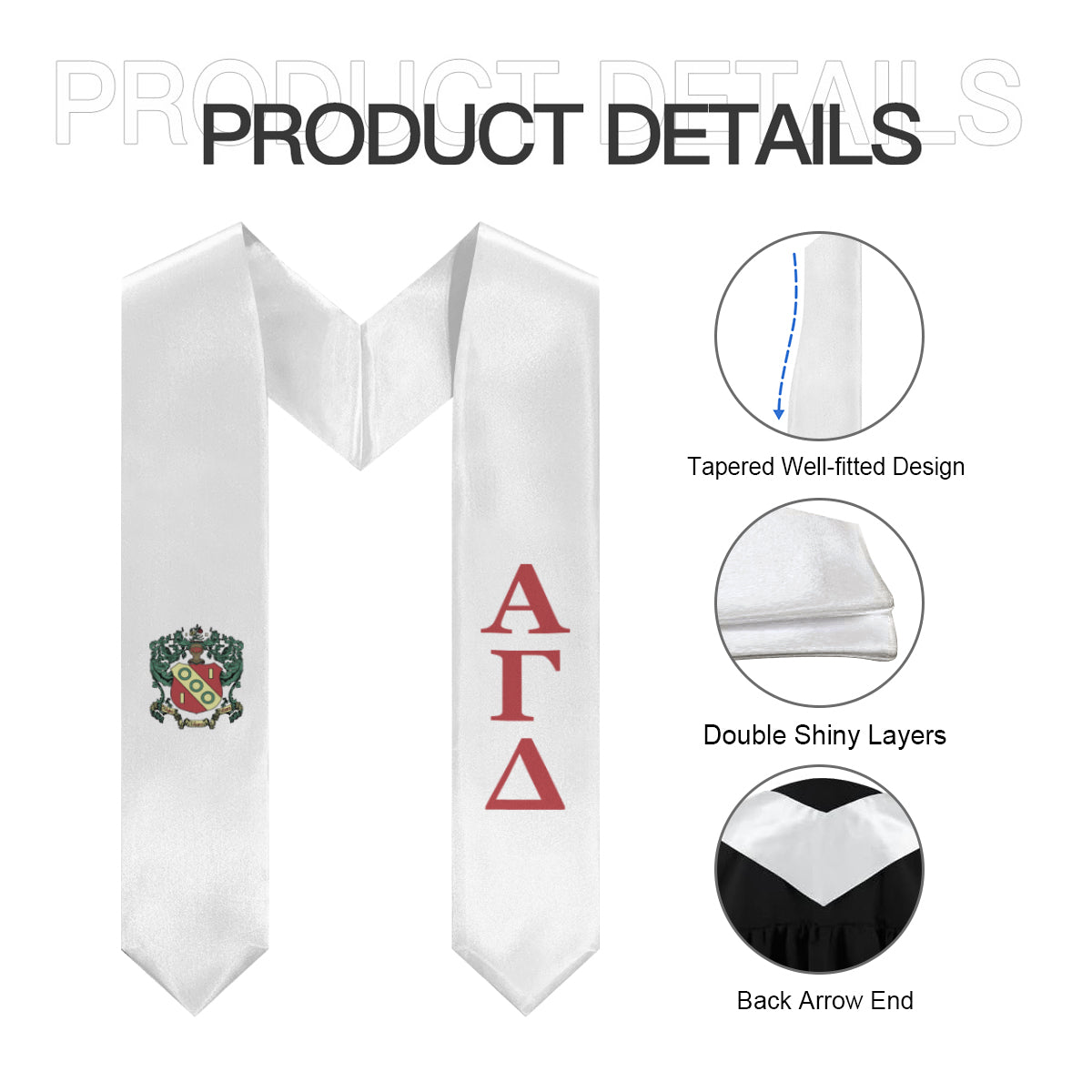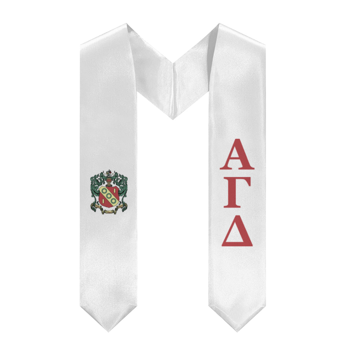 Celebrate your sisterhood with this Alpha Gamma Delta stole in white with bold red block letters and the official crest. Perfect for graduation, chapter events, or keepsake photos, this stole combines classic style with meaningful tradition.